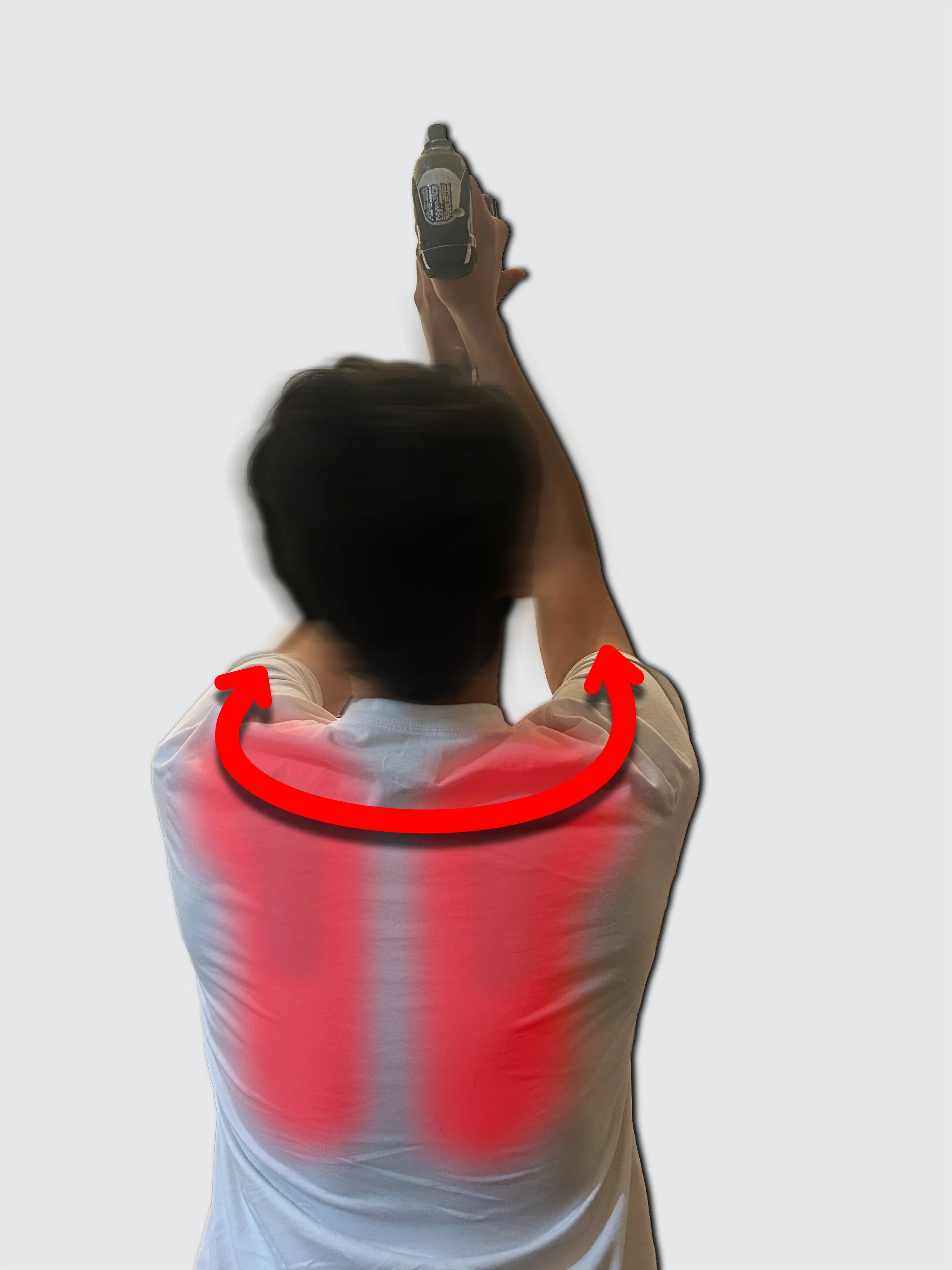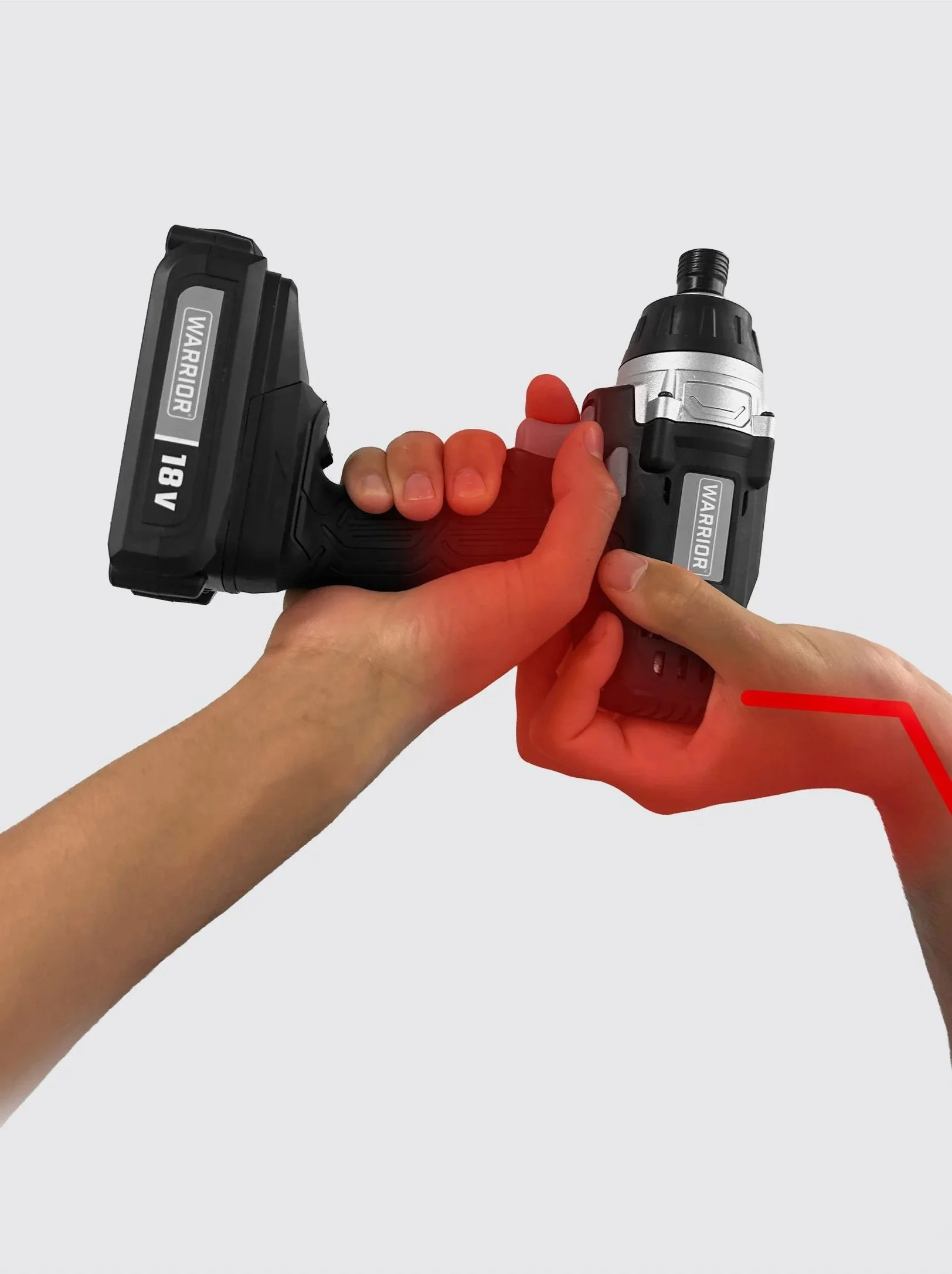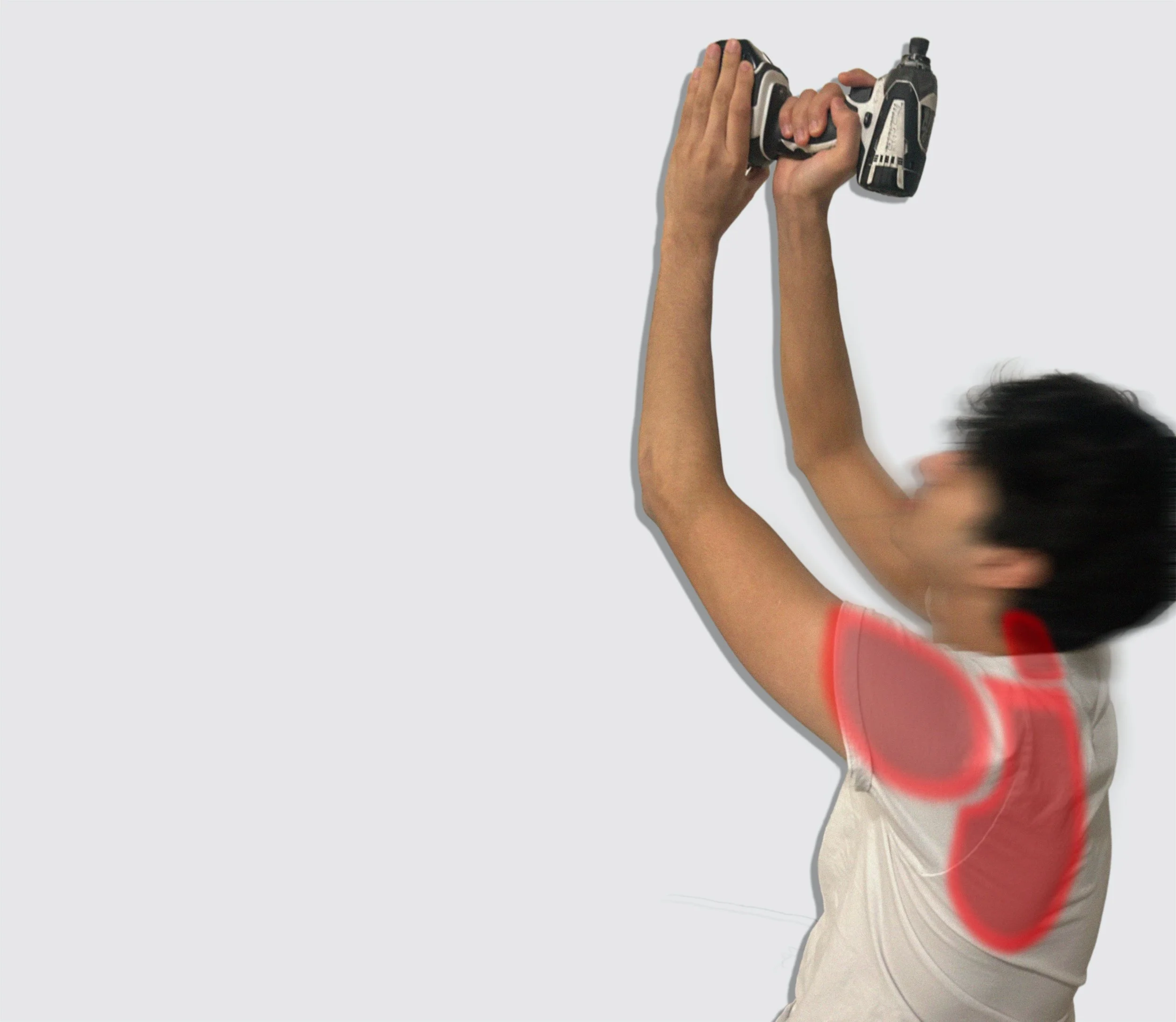 Current impact drivers don’t offer two-handed grips for users, resulting in overstraining one shoulder. When users put two hands on the driver, posture becomes hunched and rounded.