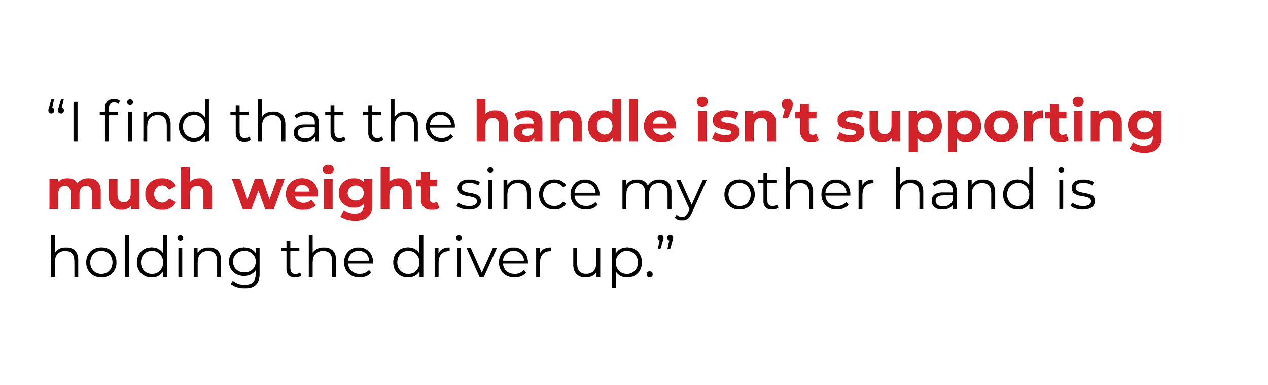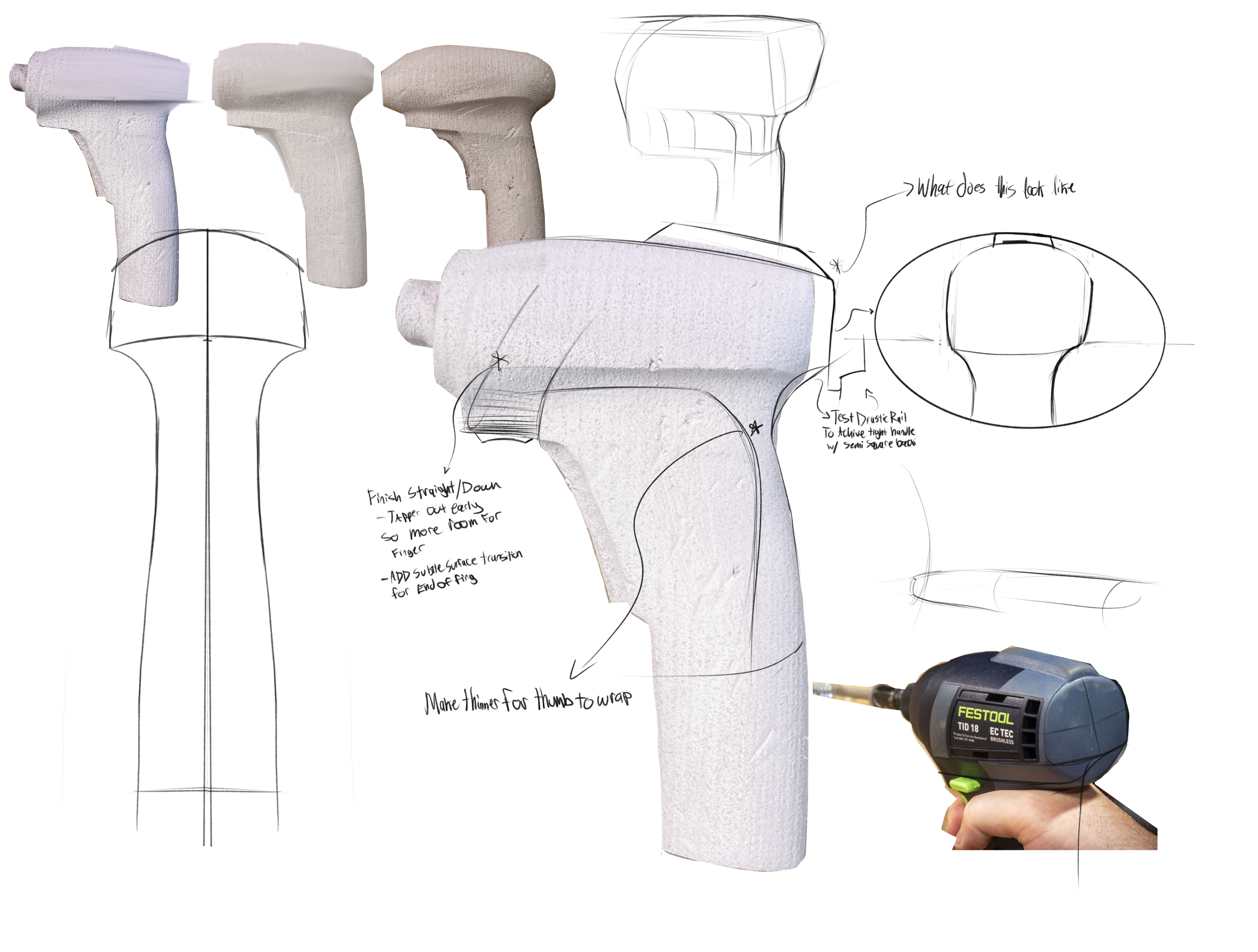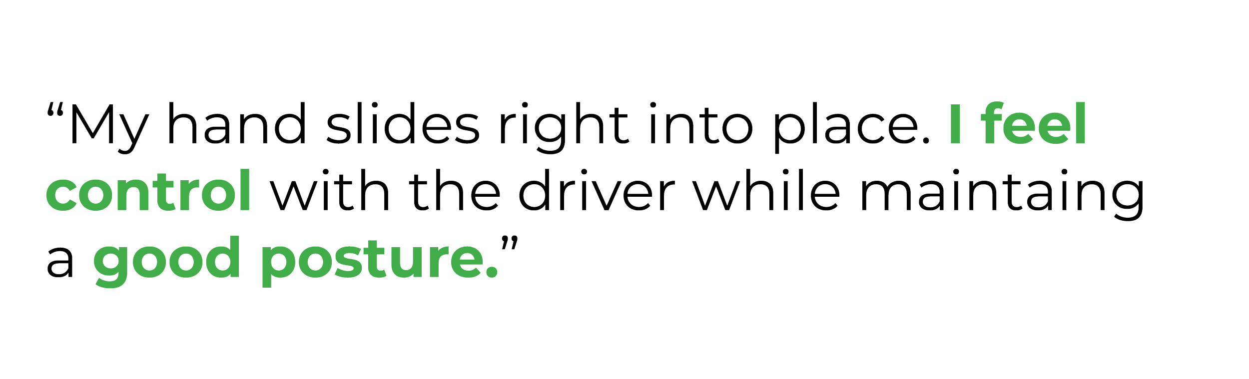 By rounding the drivers back and adding a contour line at the top, users are encouraged to hold the driver in a way that promotes good posture.
