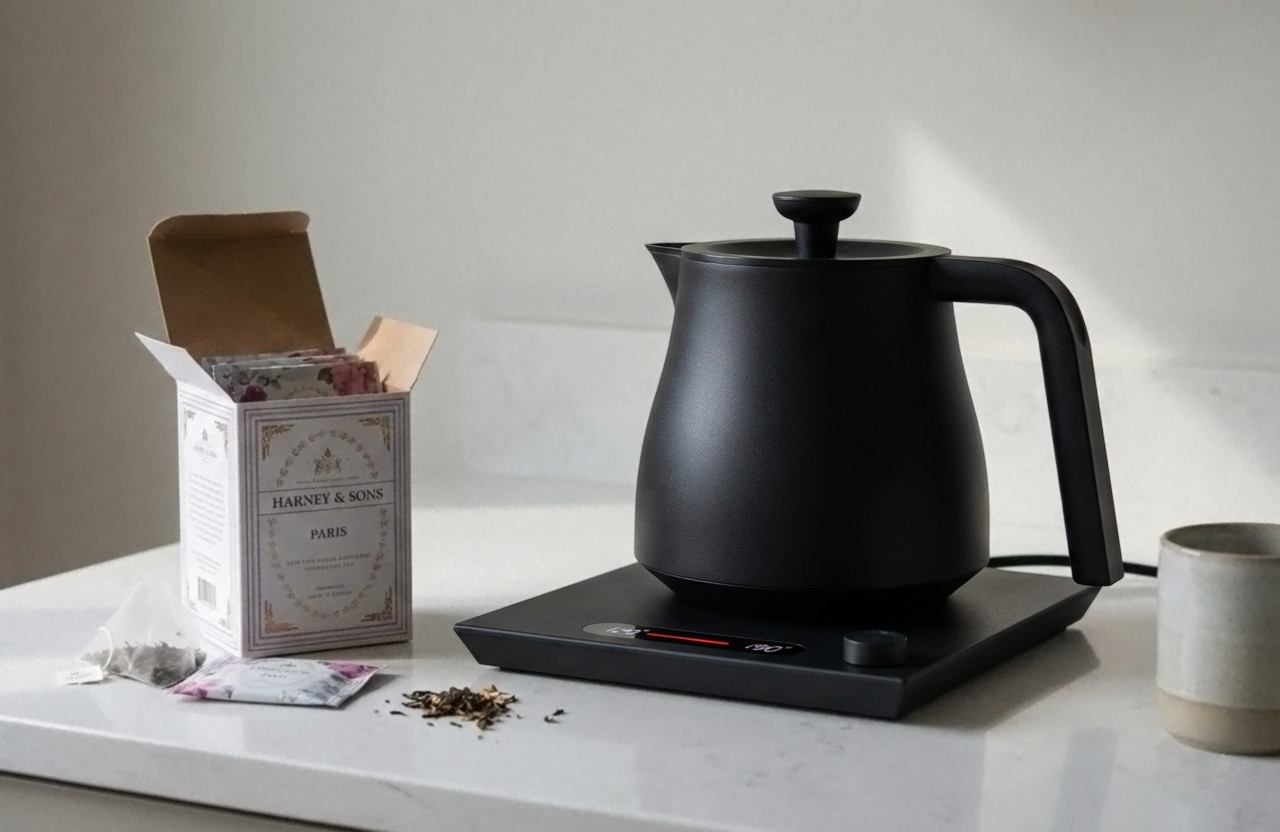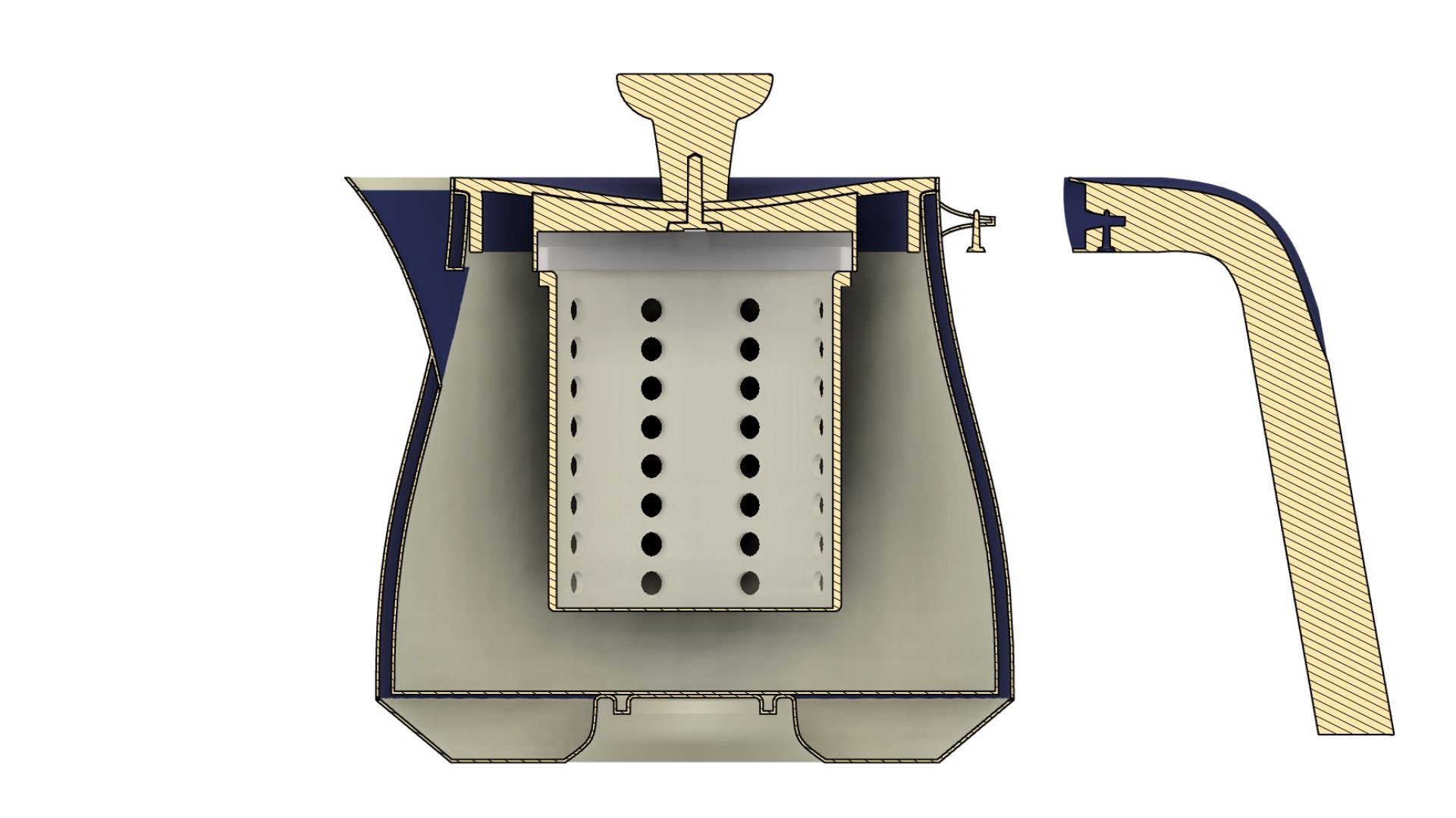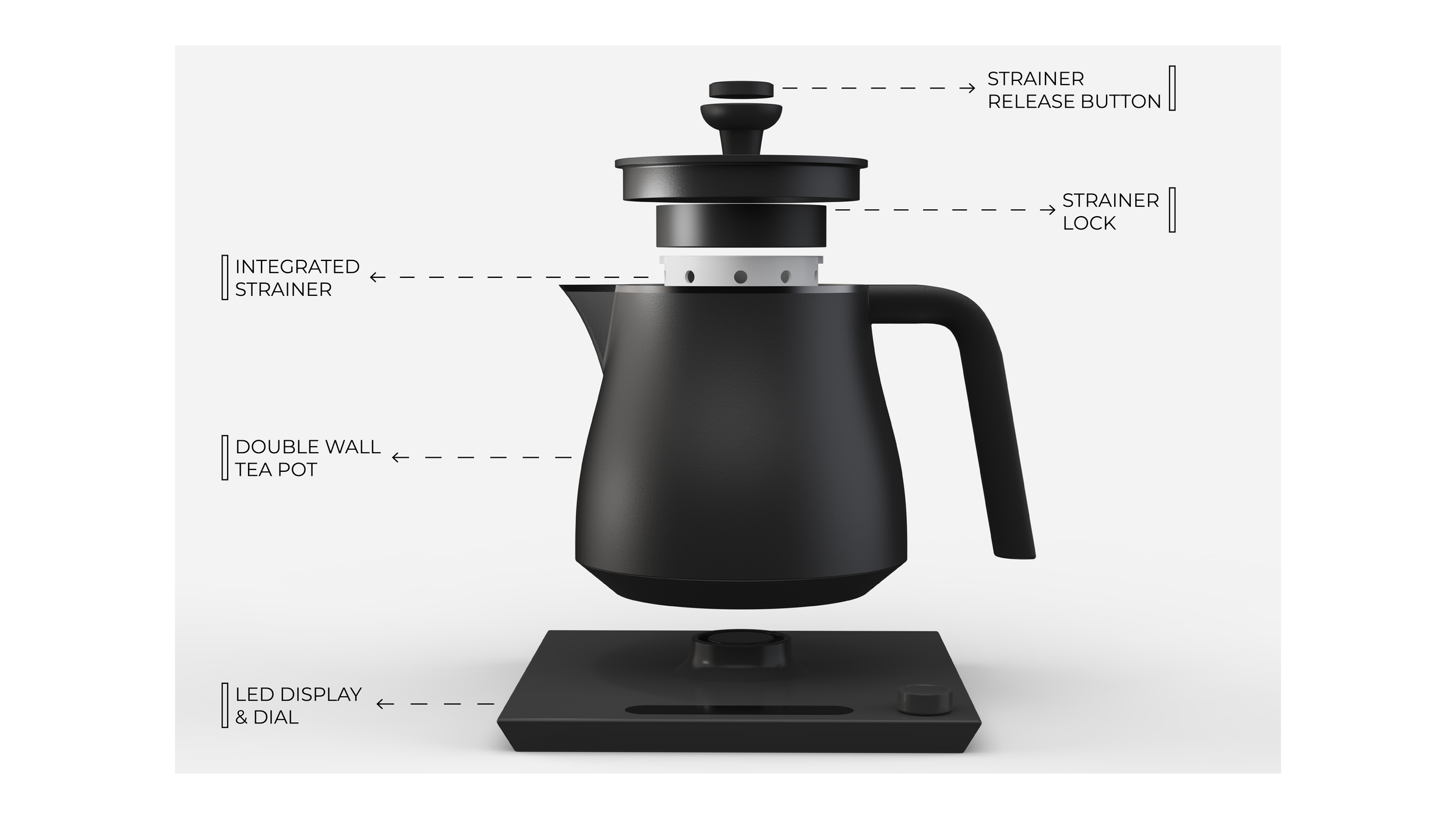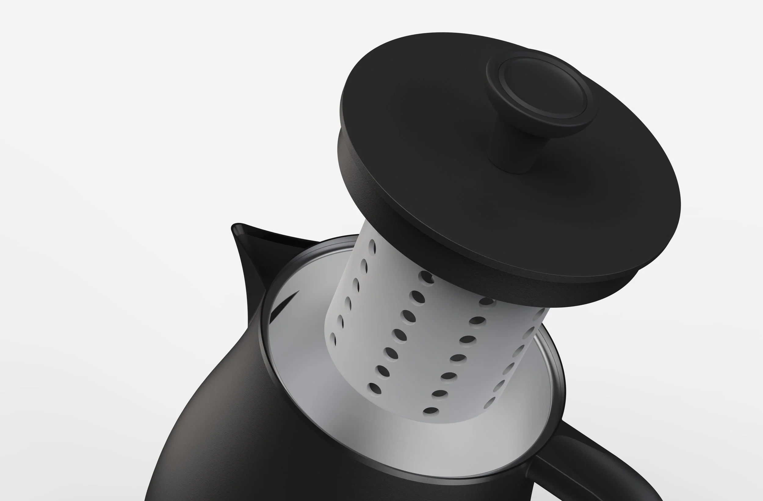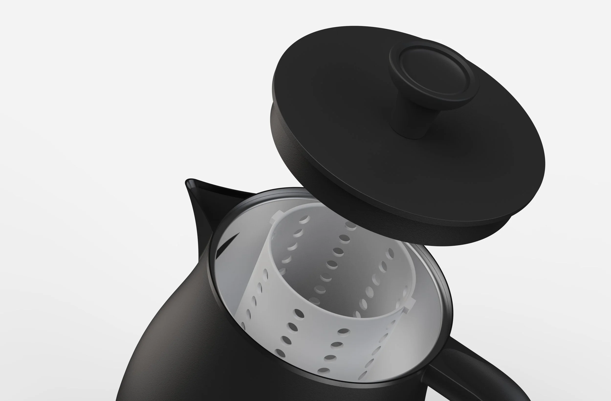 By pressing this button on the kettle’s knob, the integrated strainer drops. This feature provides a hands-free way to release the strainer when finished.